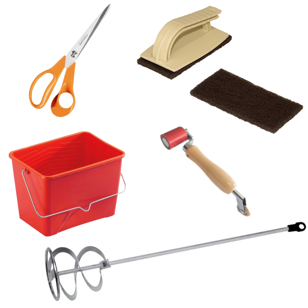 - Le Kit Primaire : Il regroupe les essentiels pour l’application du primaire et la pose des bandes. Il inclut notamment la poignée et les éponges grattantes spécifiques.